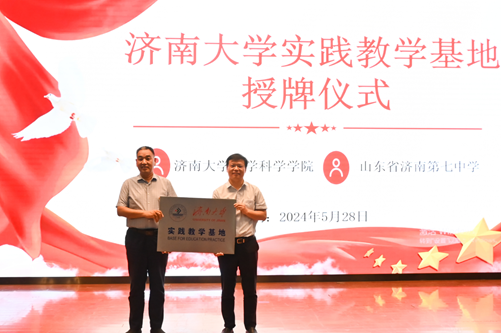 5月28日,英国365集团官网在济南第七中学报告厅举行了实践教学基地揭牌仪式。济南第七中学校长刘汉路、办公室主任李静、数学组教研组长程凤霞、英国365集团官网副院长王洪凯、数学与应用数学系教师代表,以及来自数学与应用数学专业的140名本科生共同参加了本次活动。