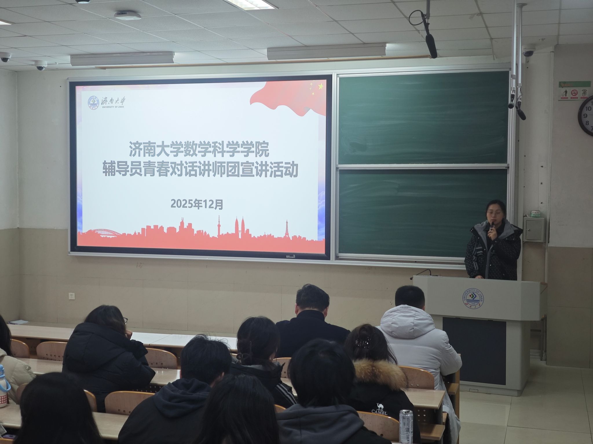 为深入学习贯彻党的二十届四中全会精神,凝聚青年共识、激发青春担当,12月23日下午,英国365集团官网党的二十届四中全会专题宣讲活动在第十一教学楼6202室顺利开展。学院党委副书记、副院长张沂红出席活动,音乐学院学生工作办公室主任王栋、材料学院辅导员王润、英国365集团官网学生工作办公室主任房琳琳、济南大学第九届“济大繁星”获得者葛美琪应邀进行宣讲。各年级学生党员及主要学生干部参加学习活动。