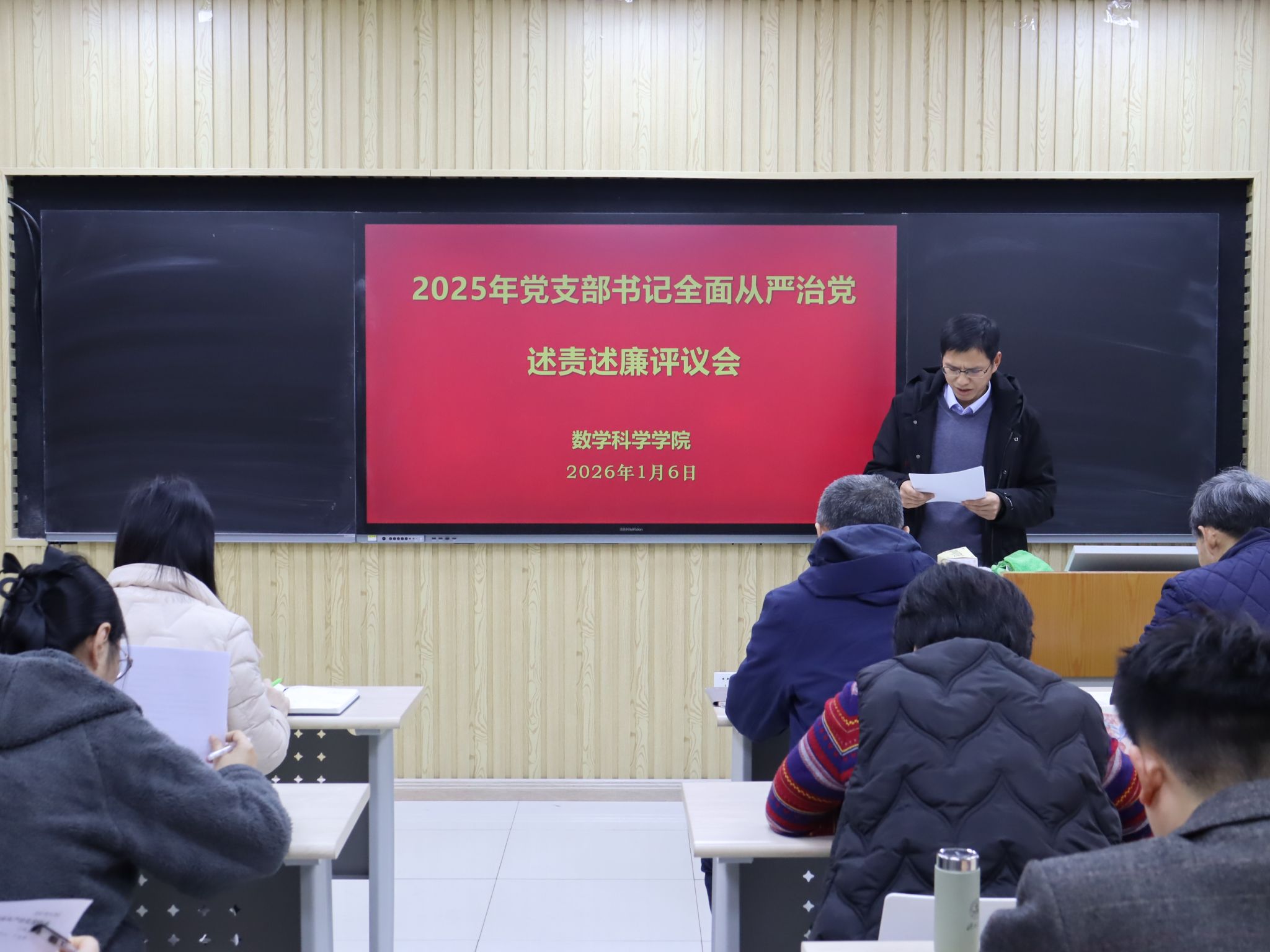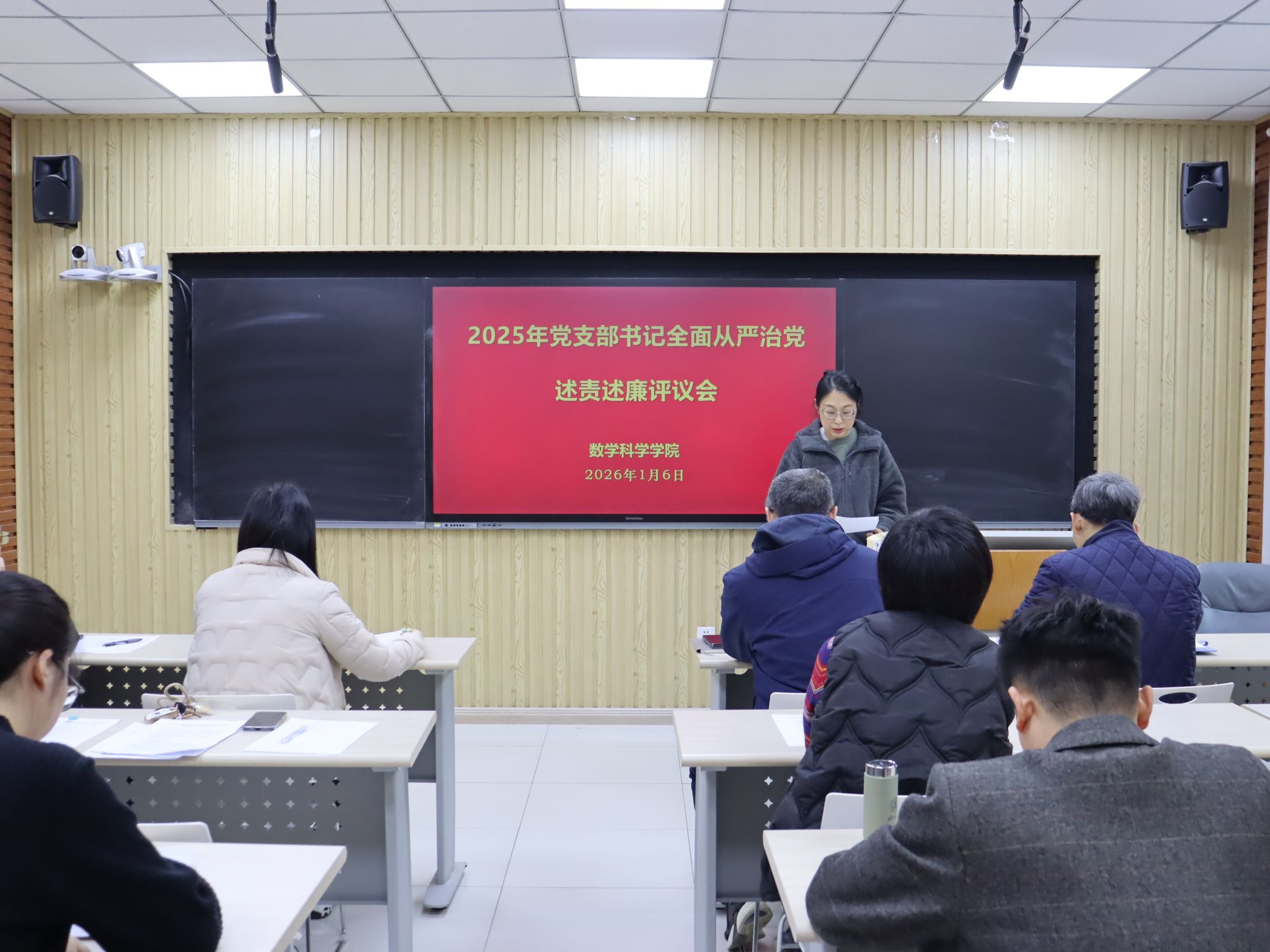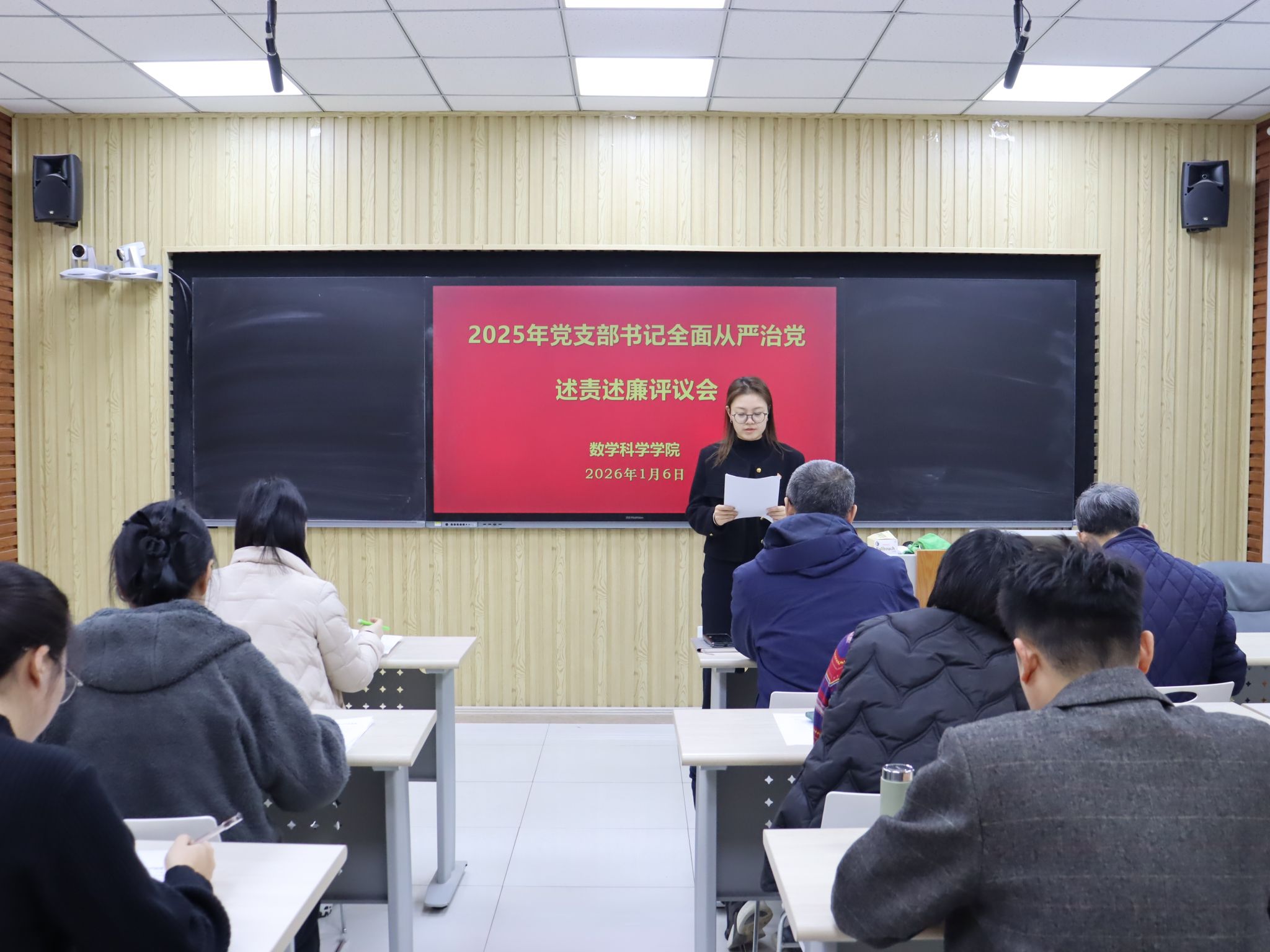 我院共有6个教工党支部和5个学生党支部参加此次评议工作。前期学院党委对各党支部的述责述廉材料进行了把关。会上,各党支部书记围绕带头落实管党治党责任情况和意识形态工作责任制,从加强政治建设、组织建设、作风建设和纪律建设入手,进行全面从严治党述责述廉。学院党委书记崔英静采取“一述一评”方式逐一进行点评,并在述责述廉全部结束后讲话提出要求。她强调,各党支部书记要时刻保持党支部全面从严治党“第一责任人”的岗位职责,落实好“第一议题”制度,深入学习贯彻党的二十大和二十届历次全会精神,锲而不舍落实中央八项规定精神,认真履职,加强意识形态阵地管理,带领支部积极发挥战斗堡垒作用和党员的先锋模范带头作用。学院领导班子成员参会并对党支部书记进行现场打分评议,评议结果经学院党委研究后,将在一定范围内对评议结果进行公示并按要求报学校党委。