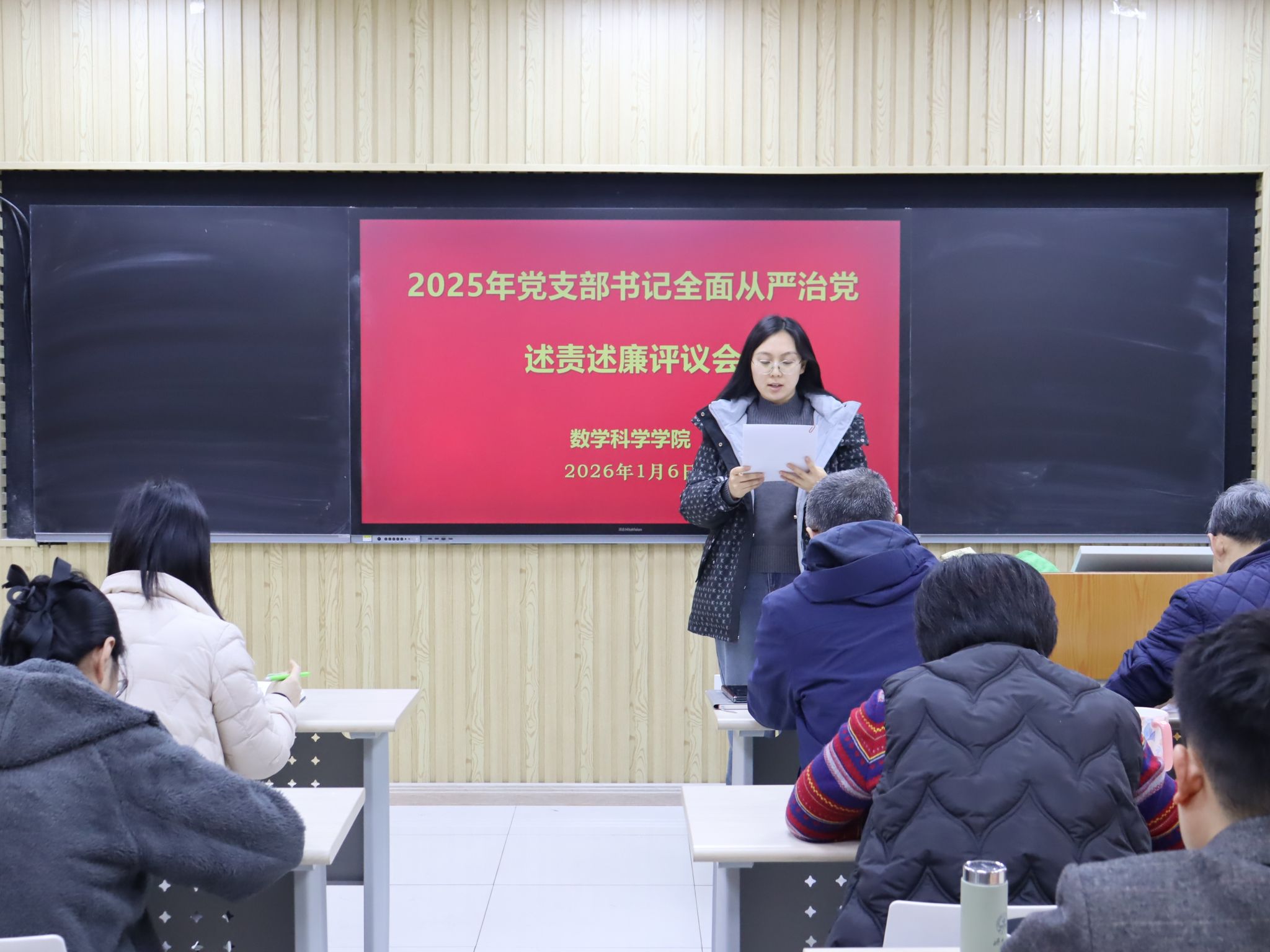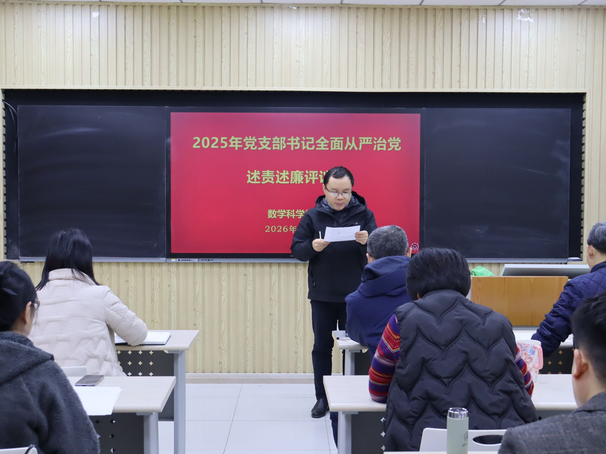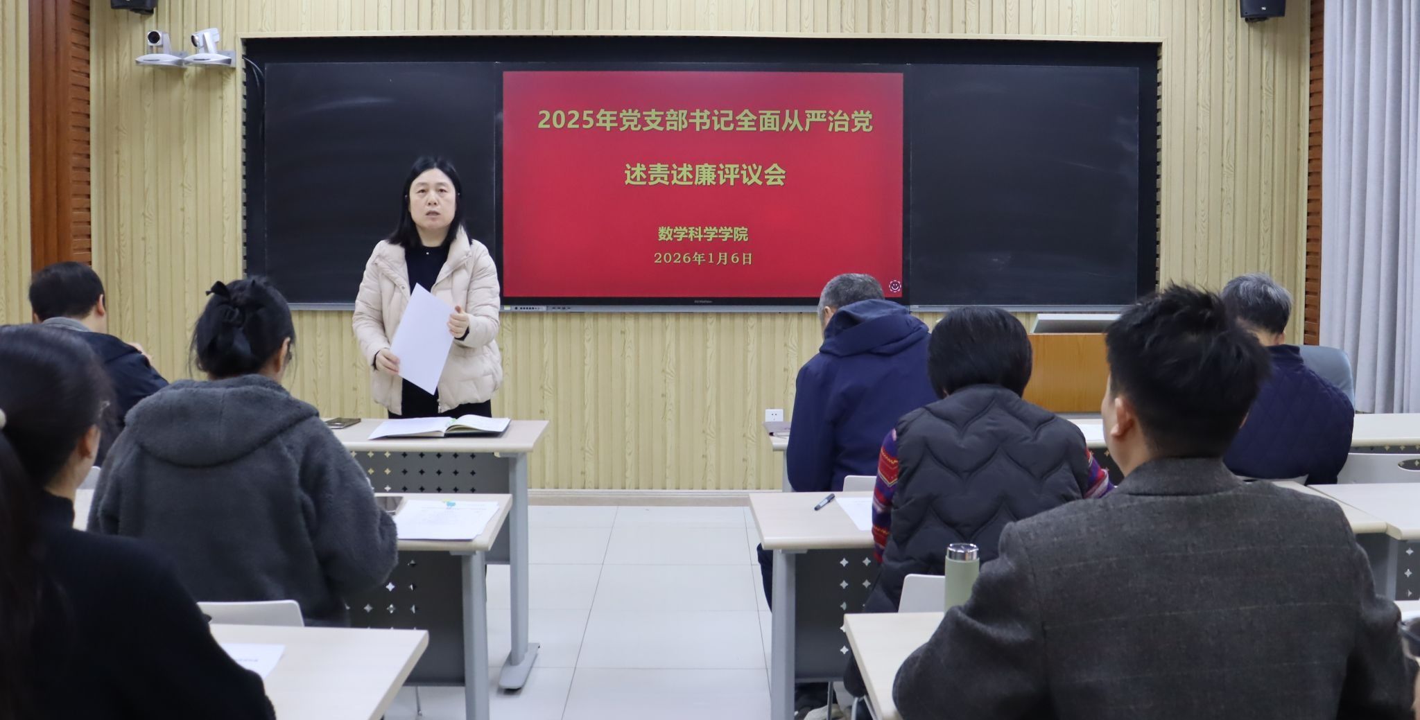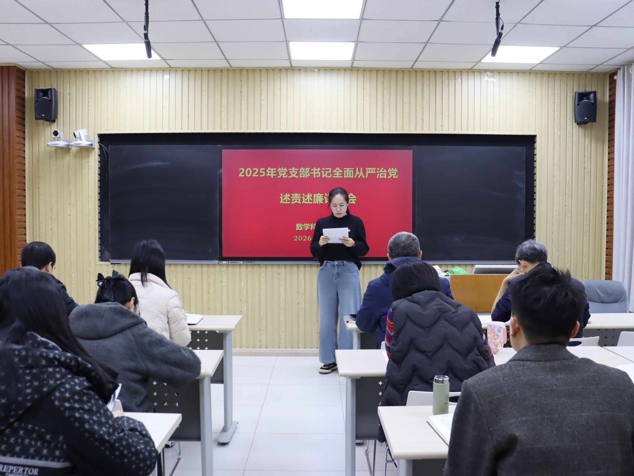 我院共有6个教工党支部和5个学生党支部参加此次评议工作。前期学院党委对各党支部的述责述廉材料进行了把关。会上,各党支部书记围绕带头落实管党治党责任情况和意识形态工作责任制,从加强政治建设、组织建设、作风建设和纪律建设入手,进行全面从严治党述责述廉。学院党委书记崔英静采取“一述一评”方式逐一进行点评,并在述责述廉全部结束后讲话提出要求。她强调,各党支部书记要时刻保持党支部全面从严治党“第一责任人”的岗位职责,落实好“第一议题”制度,深入学习贯彻党的二十大和二十届历次全会精神,锲而不舍落实中央八项规定精神,认真履职,加强意识形态阵地管理,带领支部积极发挥战斗堡垒作用和党员的先锋模范带头作用。学院领导班子成员参会并对党支部书记进行现场打分评议,评议结果经学院党委研究后,将在一定范围内对评议结果进行公示并按要求报学校党委。