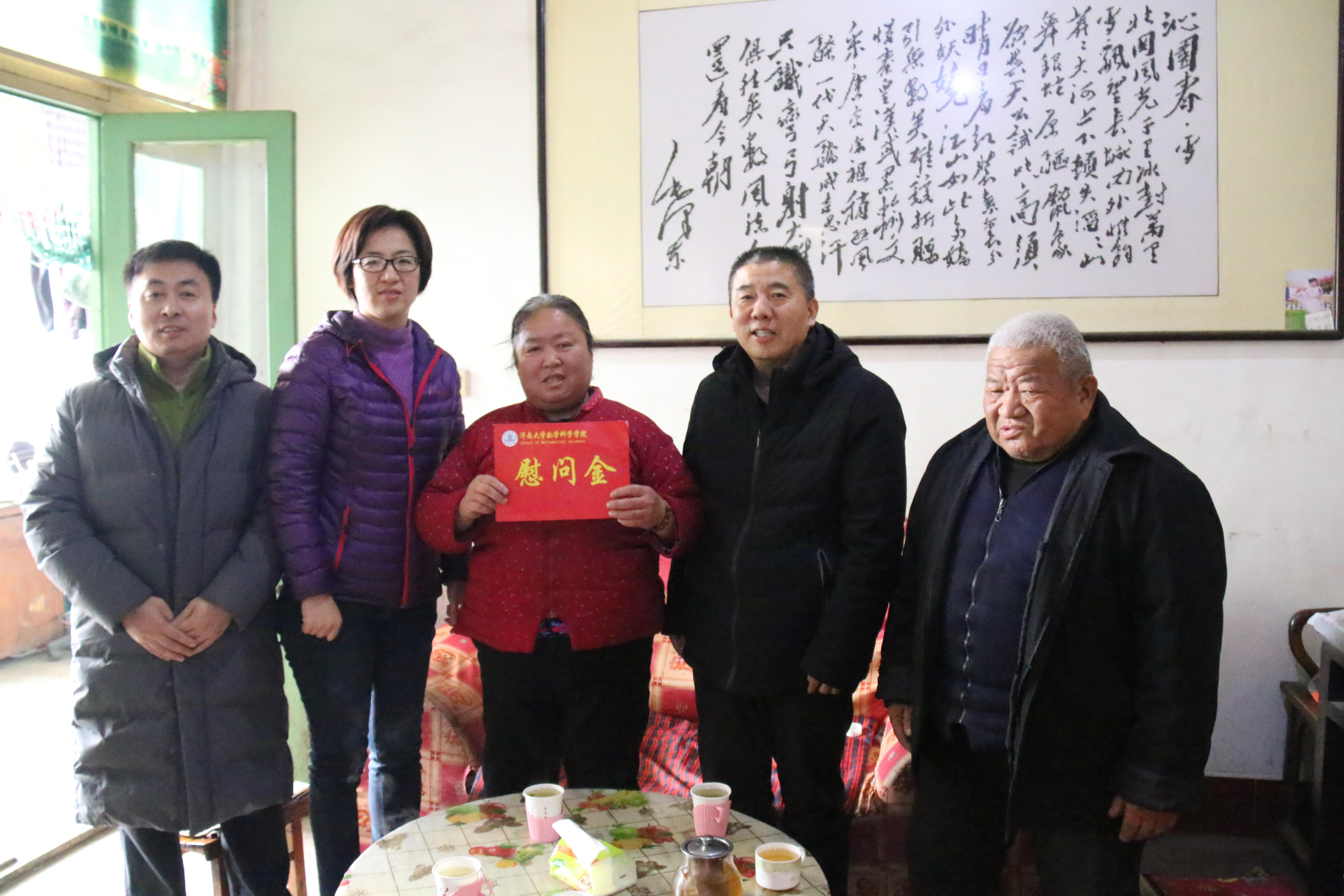 为深入贯彻落实党的十九届四中全会精神、全国教育大会、全国全省高校思想政治工作会议精神,紧紧围绕“立德树人”根本任务,培养德智体美劳全面发展的时代新人,牢固树立“以学生为本,关注两个比例、实现两个更多”的育人理念,促进学生健康成长和全面发展,按照学校《关于开展2020年寒假辅导员家访活动的通知》要求,英国365集团官网家访队于1月11日下午奔赴章丘刁镇看望慰问家庭经济困难学生小香,英国365集团官网党委书记侯启海,计划财务处副处长王秀清,英国365集团官网党委副书记、副院长张沂红等一行5人深入学生家中,与学生家长进行了深入沟通。