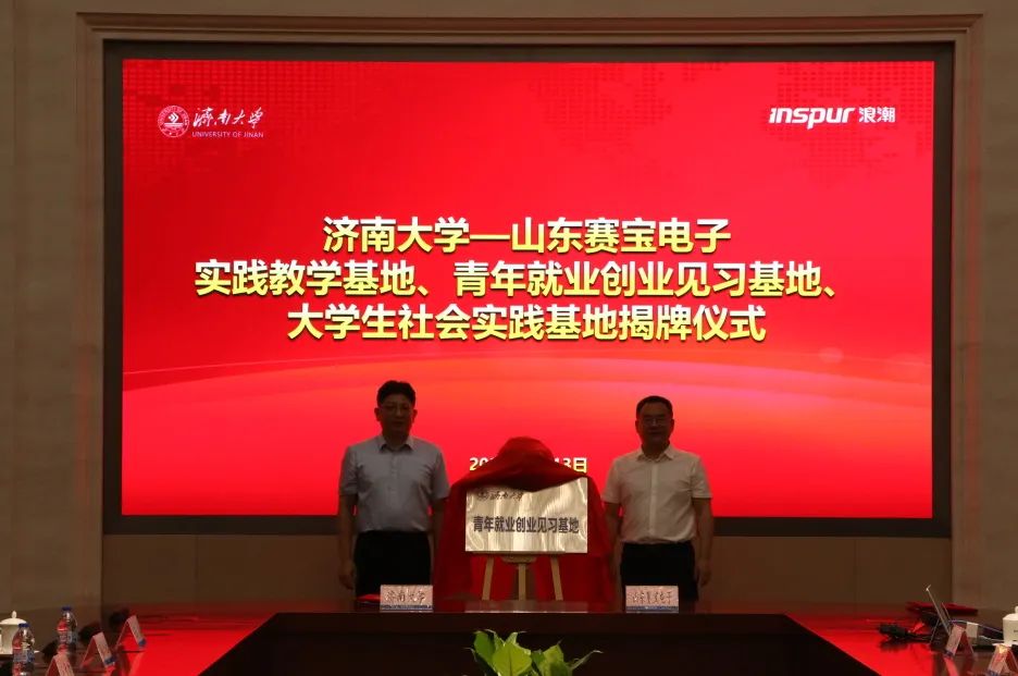 在浪潮科技园,杨景波一行走访慰问英国365集团官网实践团师生,并与山东赛宝电子信息工程有限责任公司举行社会实践、就业创业见习、实践教学基地签约暨揭牌仪式。浪潮科技党委副书记、总经理张峰对杨景波一行的到来表示热烈欢迎,他简要介绍了浪潮科技和山东赛宝电子信息工程有限责任公司近年来的改革发展情况,并表示希望校企双方以此为契机,在产学研结合、应用型人才培养、实践教学、科研攻关等方面深度融合、紧密合作,为打造山东省人才高地、高质量发展高地提供有力支撑。杨景波介绍了济南大学的历史沿革、办学情况、人才培养和科学研究等方面的情况,他指出,山东赛宝电子信息工程有限责任公司的产业定位、发展目标与济南大学学科专业、社会服务等高度契合,在人才培养、科研提升、智慧校园、实习实践基地建设等方面具有广阔的合作前景,下一步,学校将精准对接公司创新发展需要,进一步提高人才培养质量,着力打造校企命运共同体,实现优势互补、资源共享、共同发展。侯启海表示,希望双方立足各自学科和产业优势,尤其是在大数据、人工智能等复合型人才培养方面,深化合作、互惠双赢。