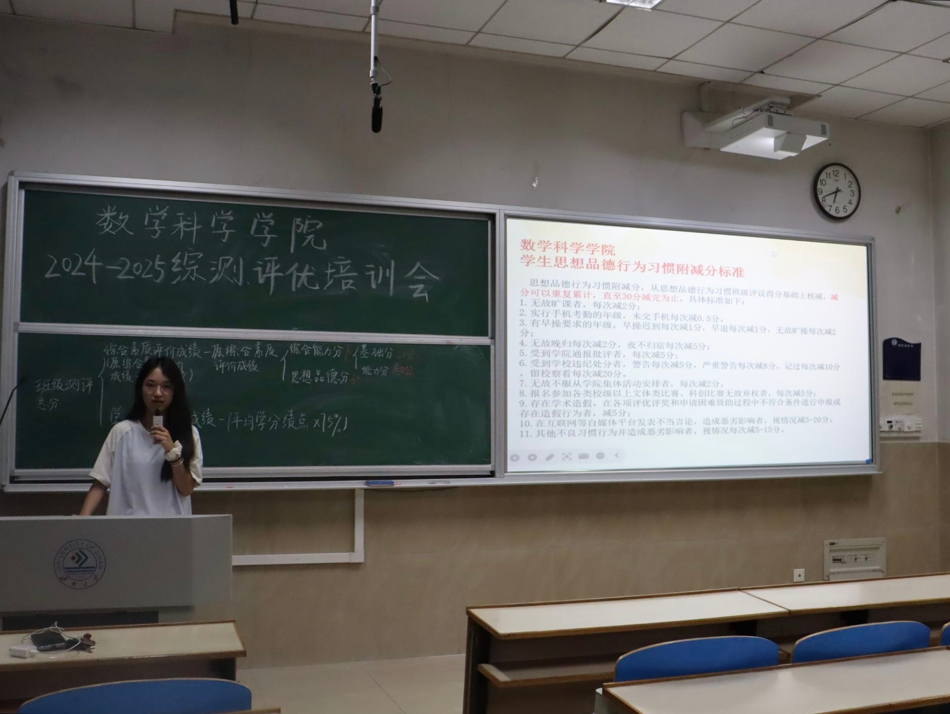 为确保2024-2025学年综合测评与评优工作规范、有序开展,让班级学生干部明晰工作流程与评分标准,9月18日,英国365集团官网学生会学业发展部于1教106教室组织召开综合测评选优工作培训会,各班级班长、学委准时参会。