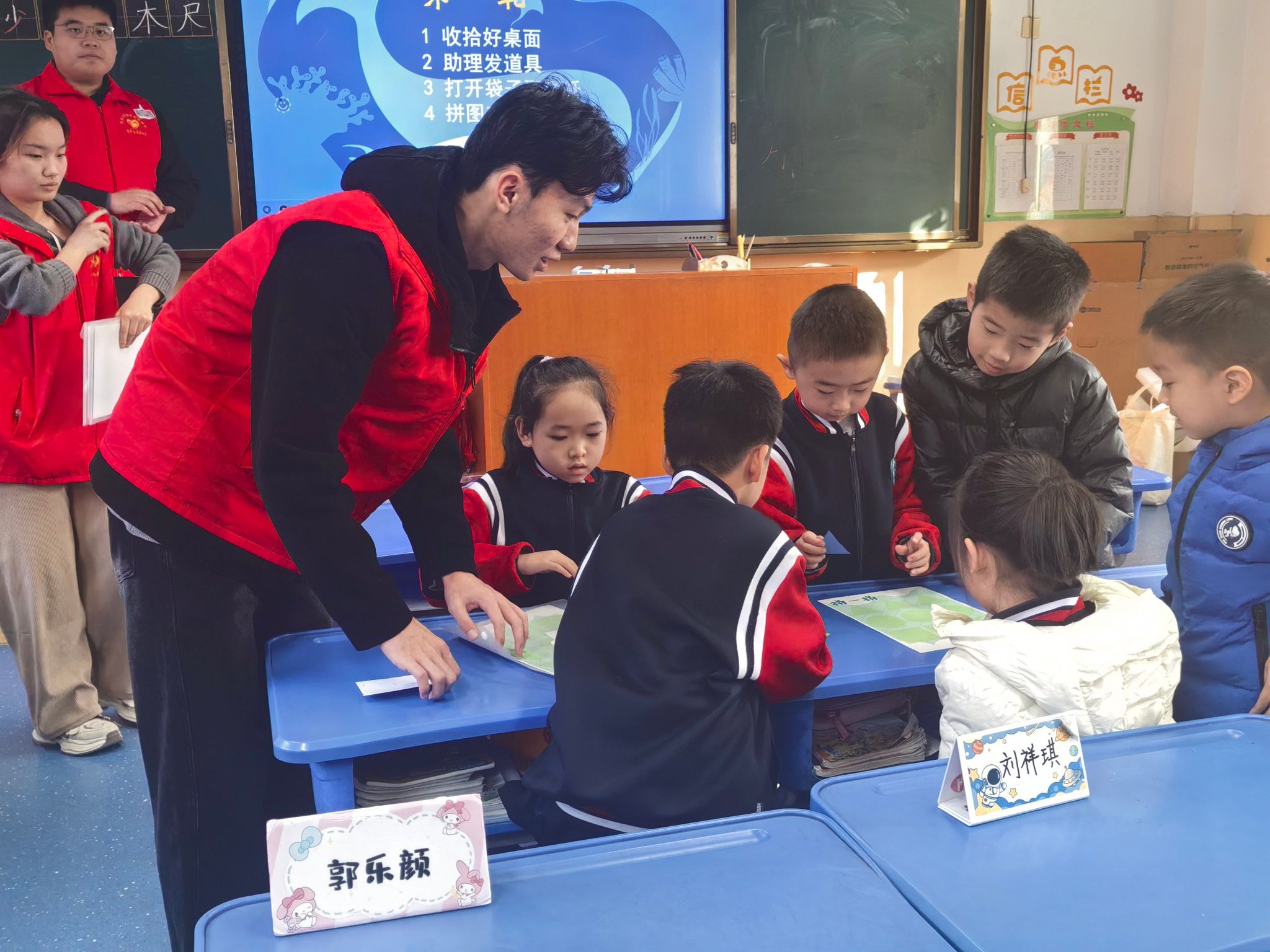 为积极响应山东省 “百万大学生进社区” 专项行动号召,切实履行高校服务地方、践行社会责任的使命担当,12 月 9 日下午,英国365集团官网青年志愿者协会组织志愿者队伍走进济南市市中区德贤社区,为辖区内的后龙小区一年级小学生开展了一场趣味十足的垃圾分类科普课堂活动。