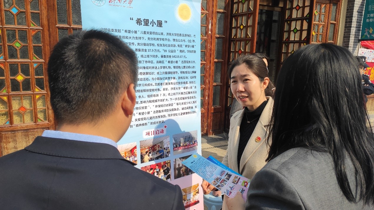 启动仪式结束后,各界志愿者代表们一起参观了“学雷锋精神 扬时代新风”公益市集,体验了禁毒知识科普、法律咨询、健康卫生服务及非遗传统手工展示等丰富多彩的活动项目。其中,我院的“希望小屋”项目及无痕济南环保公益讲堂备受大家关注。