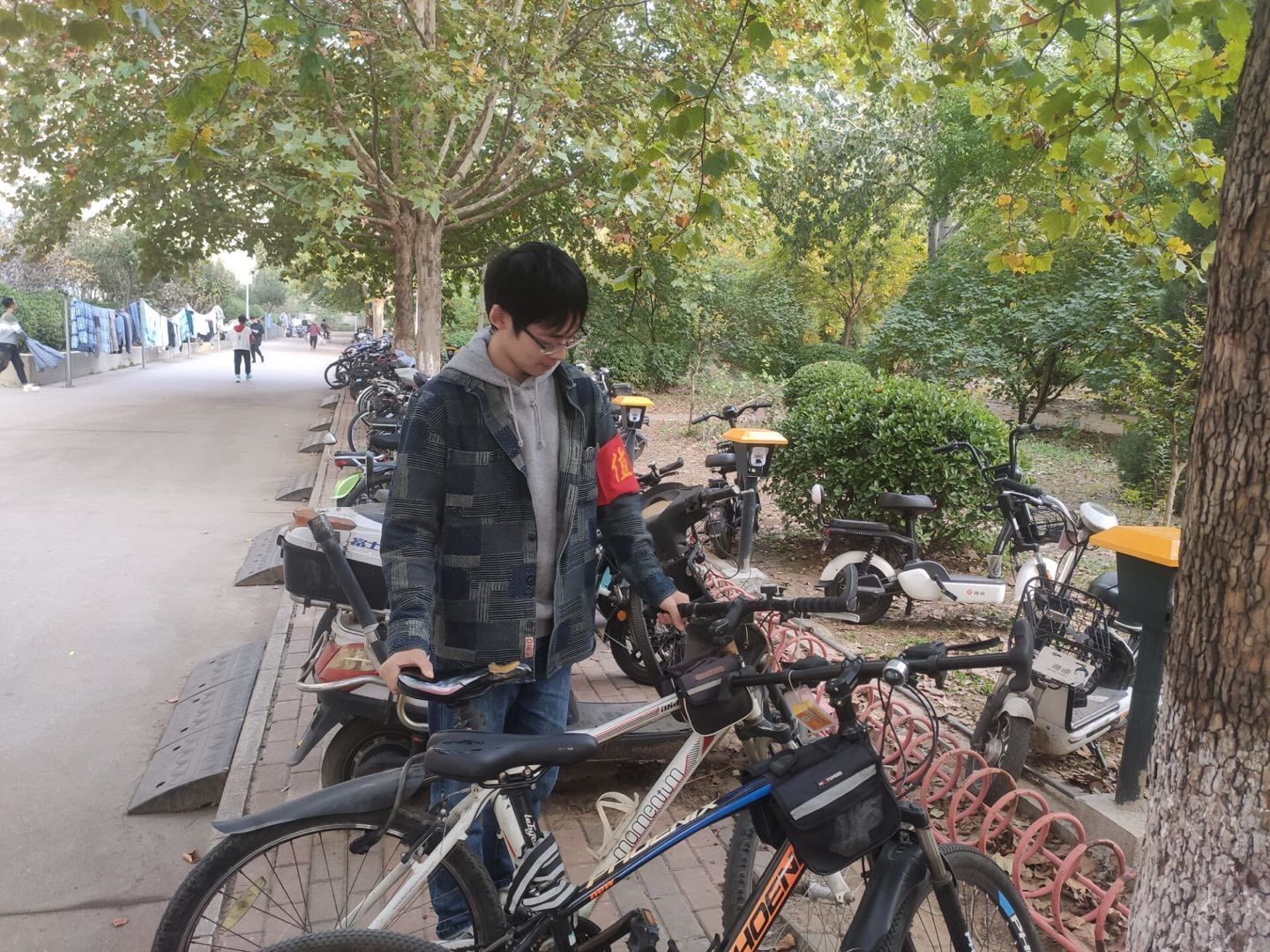 在这次活动中,志愿者们每周的星期四会集中在十教、十一教、八食堂、九食堂等人流量高峰的地方进行志愿服务规整车辆,其他时间则在公寓楼附近的停车点进行志愿服务。志愿服务过程中,志愿者们认真负责,耐心细致的把卡住的非机动车分开,把倒下的扶起来,并把随意停放的非机动车辆搬运到指定地点。在志愿者们不懈的努力和坚持下,同学们自觉规范摆放非机动车的意识提高,原来乱停乱放、东倒西歪的非机动车被摆放地整整齐齐,道路变得井然有序。