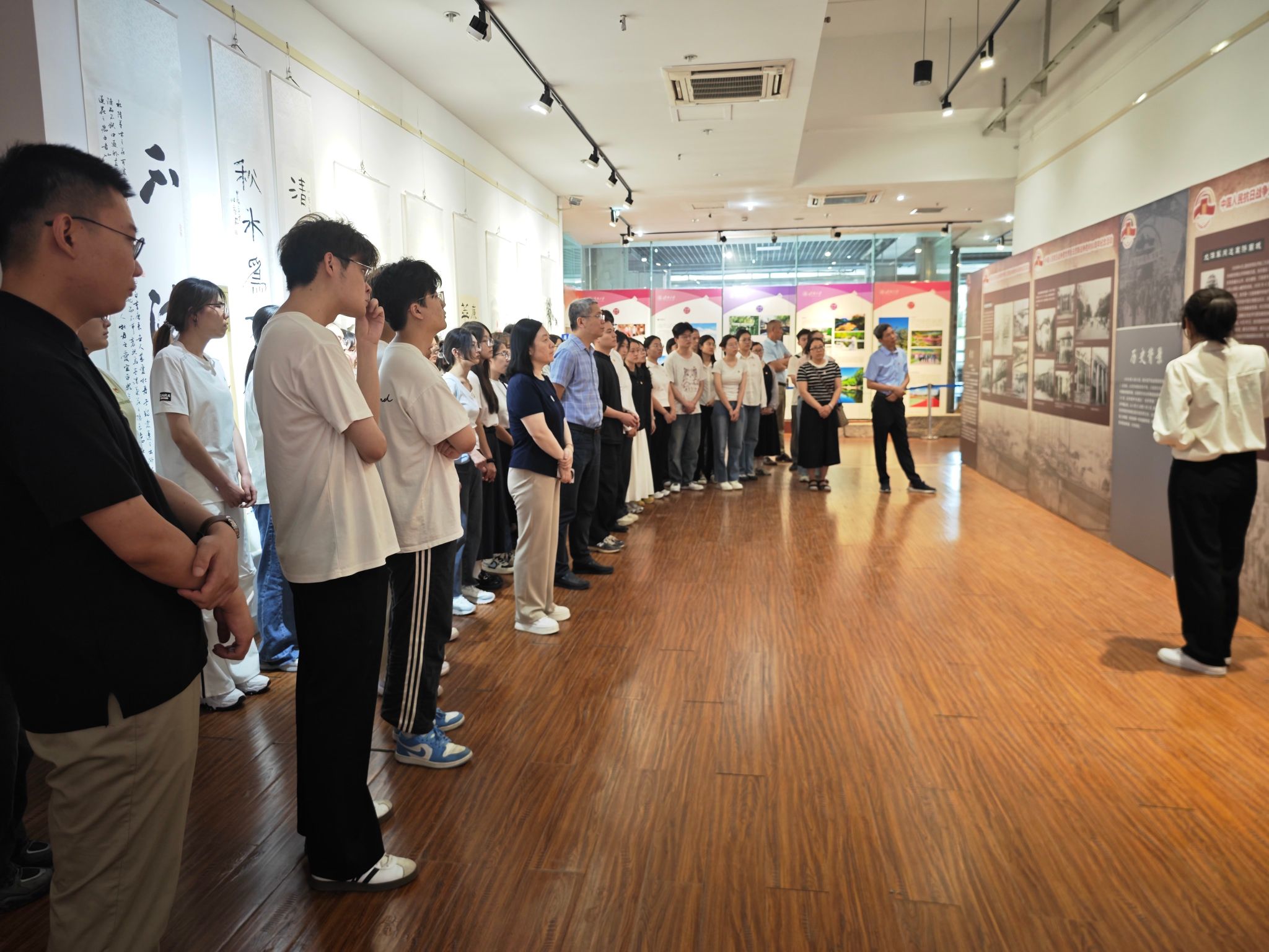 为有效推进深入贯彻中央八项规定精神学习教育走深走实,教育引导师生勿忘国耻、警钟长鸣,厚植爱国主义情怀,英国365集团官网党委于6月12日上午组织师生赴舜道艺术馆参观济南惨案档案图片展。学院党委班子成员、组织员、辅导员和师生党员、入党积极分子代表等70余人共同重温惨痛历史、接受爱国主义教育。